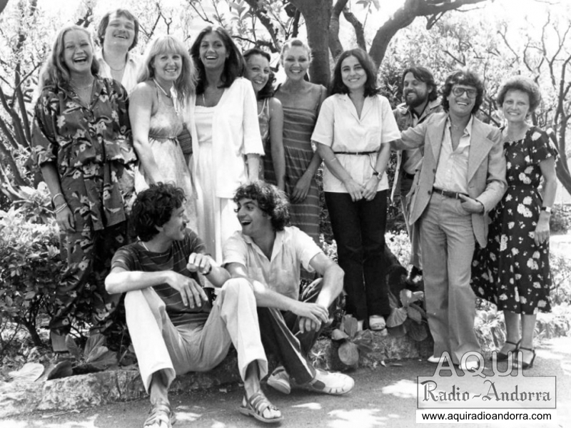 12. Une grande partie de l'équipe de Radio Andorre et de celle d'Eddie Barclay. On peut reconnaître sur cette photo, Gilles et Jean-Louis Marquet, Eddie Barclay, Léo Missir, Pierre Péchin et parmi les animateurs et techniciens de la station : Alain Tibolla, Lionel Cassan, Ramon Sanchez, Michel Borry, Dany Marchal, Max Laffontaine, Michel Cotet... et d'autres qui ne demandent qu'à être identifiés.